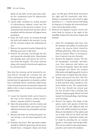 8 Remove the sternum: cut through the ribs ulcers or masses. Place a 2 cm long sec-