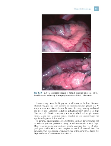 Fig. 4.19 (a, b) Laparoscopic images of normal pancreas (duodenal limb).
