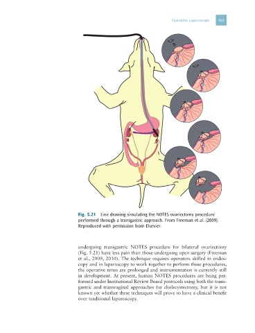 Fig. 5.21 Line drawing simulating the NOTES ovariectomy procedure