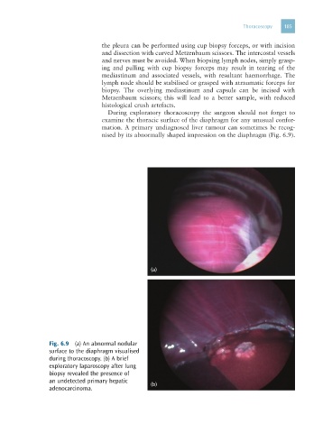 examine the thoracic surface of the diaphragm for any unusual confor-