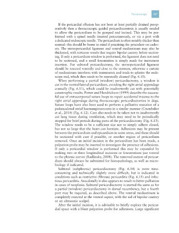 in cases of neoplasia. Subtotal pericardiectomy is started the same as for