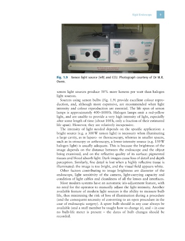 Fig. 1.9 Xenon light source (left) and CCU. Photograph courtesy of Dr M.R.