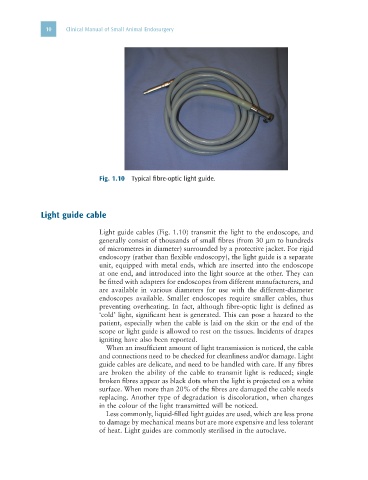 Light guide cables (Fig. 1.10) transmit the light to the endoscope, and
