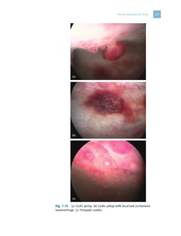 Female Reproductive Tract 223 (a) (b) (c) Fig. 7.15 (a) Cystic polyp. (b) Cystic polyp with localised ecchymotic haemorrhage. (c) Polypoid cystitis.