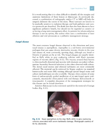 Fig. 8.12 Nasal aspergillosis in the dog: fluffy white to grey coalescing