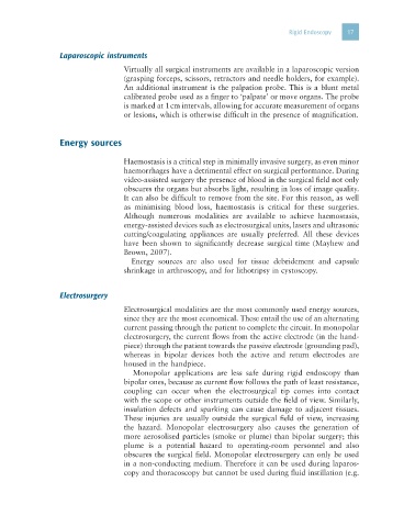 obscures the surgical field. Monopolar electrosurgery can only be used