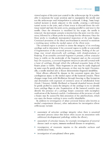 fissuring. If an unstable coronoid fragment is present, yellow avascular