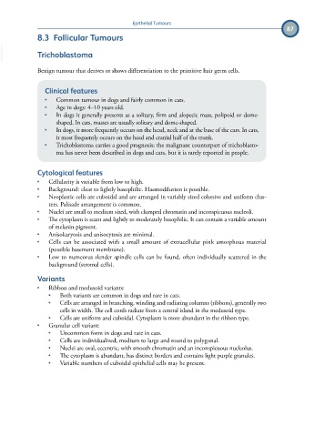 • Trichoblastoma carries a good prognosis; the malignant counterpart of trichoblasto-