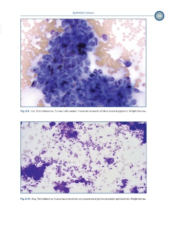 Fig. 8.9. Cat. Trichoblastoma. Tumour cells contain moderate amounts of black melanin pigment. Wright-Giemsa.