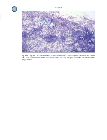 cells), lower numbers of anucleated squamous epithelial cells from the cystic area and numerous neutrophils.