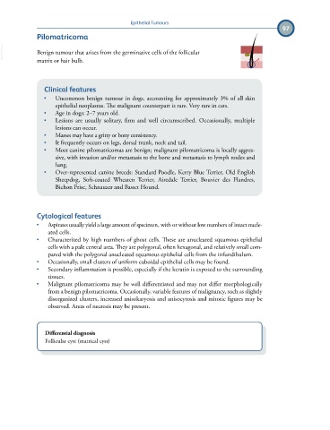 • Most canine pilomatricomas are benign; malignant pilomatricoma is locally aggres-