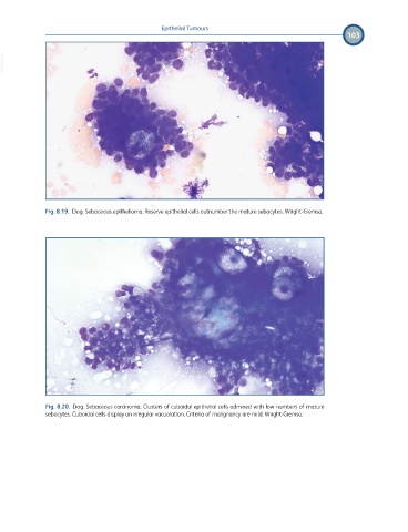 Fig. 8.19. Dog. Sebaceous epithelioma. Reserve epithelial cells outnumber the mature sebocytes. Wright-Giemsa.