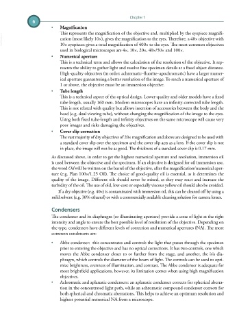 • Achromatic and aplanatic condensers: an aplanatic condenser corrects for spherical aberra-