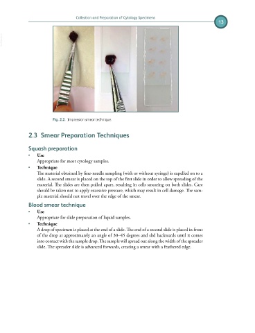 material. The slides are then pulled apart, resulting in cells smearing on both slides. Care