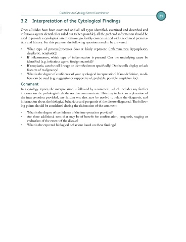 used to provide a cytological interpretation, preferably contextualized with the clinical presenta-