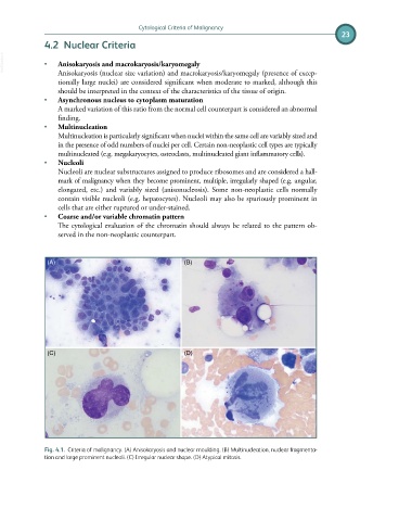 Fig. 4.1. Criteria of malignancy. (A) Anisokaryosis and nuclear moulding. (B) Multinucleation, nuclear fragmenta-