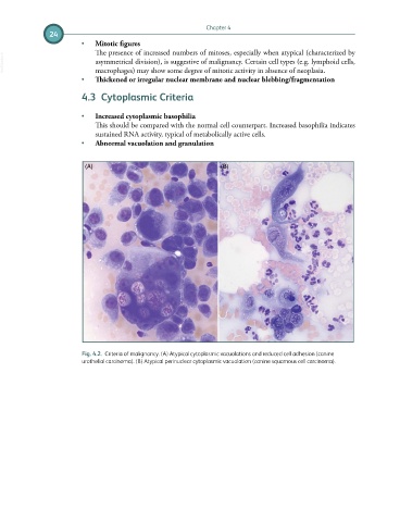 Fig. 4.2. Criteria of malignancy. (A) Atypical cytoplasmic vacuolations and reduced cell adhesion (canine