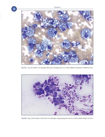 Fig. 6.5. Dog. Activated macrophages with signs of phagocytosis in a haemodiluted background. Wright-Giemsa.