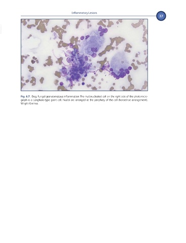 Fig. 6.7. Dog. Fungal granulomatous inflammation The multinucleated cell on the right side of the photomicro-