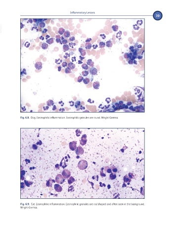 Fig. 6.8. Dog. Eosinophilic inflammation. Eosinophilic granules are round. Wright-Giemsa.