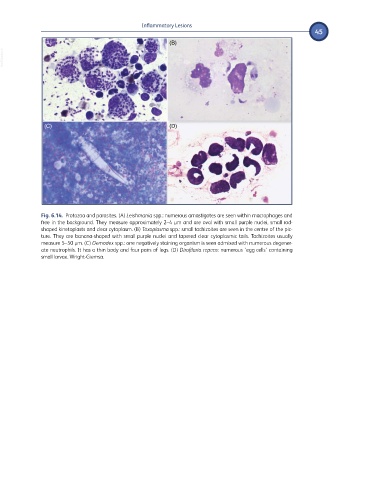 Fig. 6.14. Protozoa and parasites. (A) Leishmania spp.: numerous amastigotes are seen within macrophages and