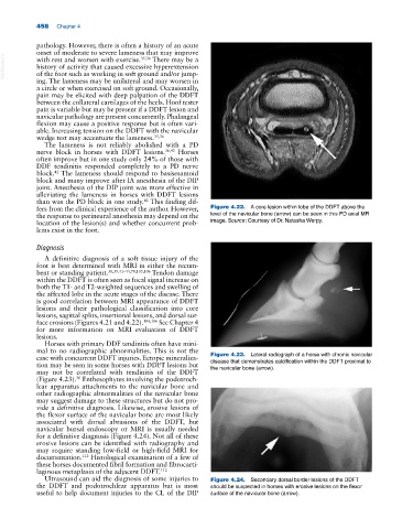 case with concurrent DDFT injuries. Ectopic mineraliza- Figure 4.23. Lateral radiograph of a horse with chronic navicular