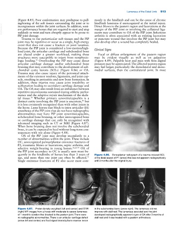 quently in the hindlimbs of horses less than 3 years of Figure 4.86. Dorsoplantar radiograph of a trauma‐induced SCL
