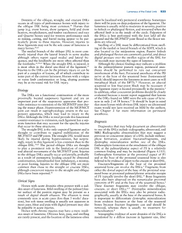 den onset of lameness. Mild swelling of the palmar/plan- cruciate, or short DSLs. 4,55 Dystrophic mineralization