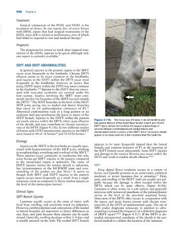 size, heat, and pain because these injuries can be easily of DDFT injury 2,64,78 (Figure 4.117). If the DFTS is dis-