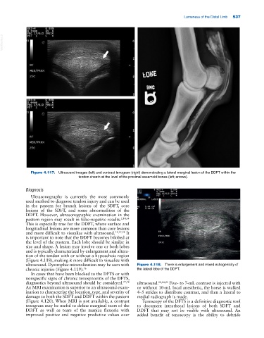 (Figure 4.120). When MRI is not available, a contrast Tenoscopy of the DFTS is a definitive diagnostic tool