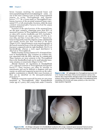 Figure 4.125. (A) Oblique radiograph of a Standardbred racehorse with a large, displaced apical sesamoid fracture (arrow).