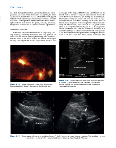 tiple fractures that involve the pubis, ischium, and ilium. the stifle and thigh area. Ultrasonography 1,31 (transcutane-