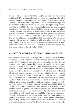 7.8 NEED OF NATURAL ANTIOXIDANTS IN DAIRY PRODUCTS