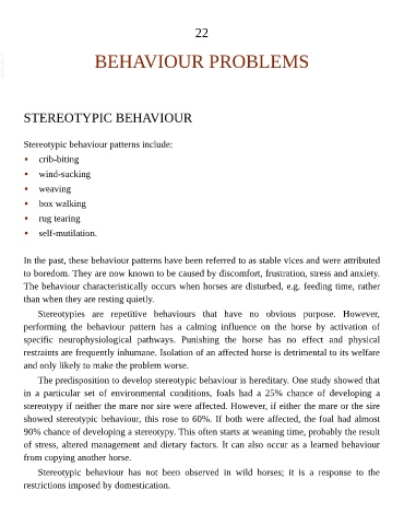 90% chance of developing a stereotypy. This often starts at weaning time, probably the result