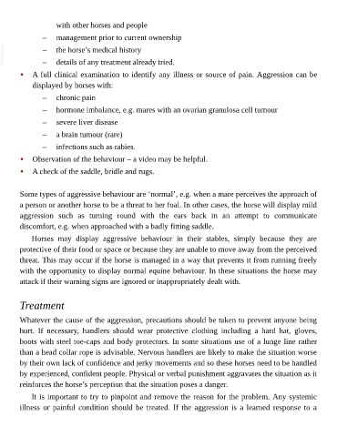 illness or painful condition should be treated. If the aggression is a learned response to a