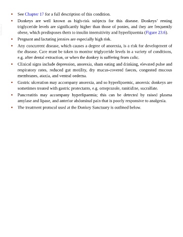 • Gastric ulceration may accompany anorexia, and so hyperlipaemic, anorexic donkeys are