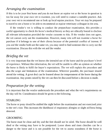 attend the vetting. A great deal can be learned about the temperament of the horse during the