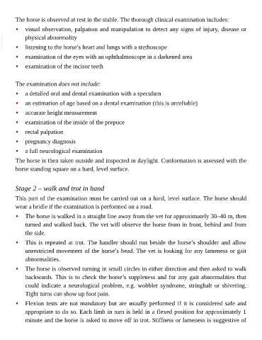 minute and the horse is asked to move off in trot. Stiffness or lameness is suggestive of