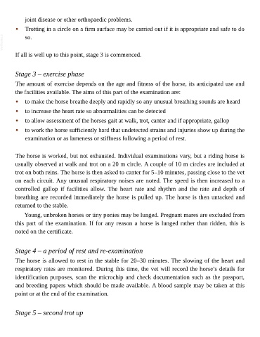trot on both reins. The horse is then asked to canter for 5–10 minutes, passing close to the vet