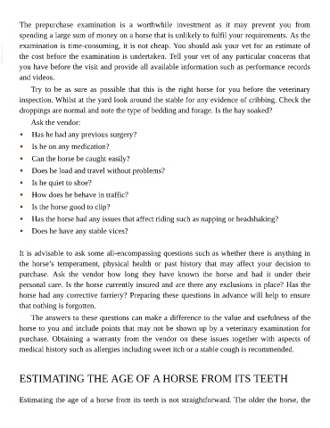 inspection. Whilst at the yard look around the stable for any evidence of cribbing. Check the