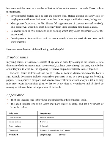 • Behaviour such as crib-biting and wind-sucking which may cause abnormal wear of the