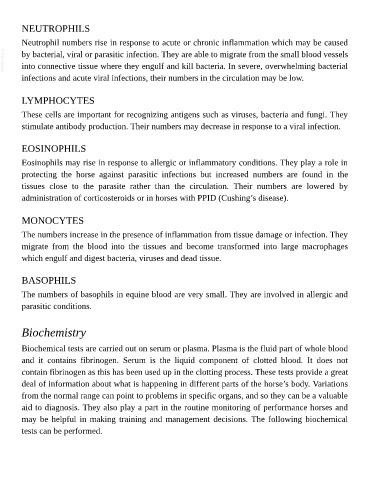 The numbers of basophils in equine blood are very small. They are involved in allergic and