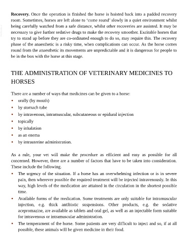 necessary to give further sedative drugs to make the recovery smoother. Excitable horses that