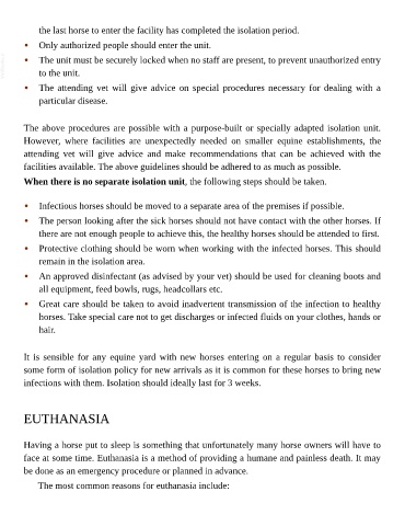 • Infectious horses should be moved to a separate area of the premises if possible.