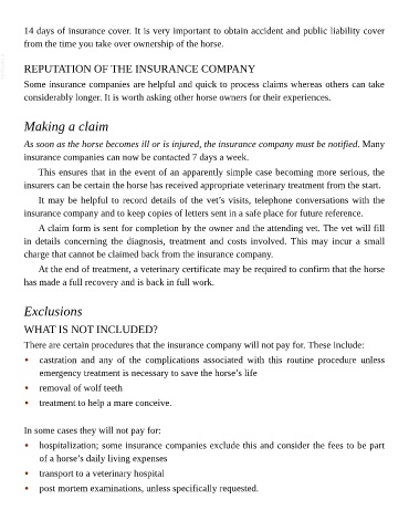 14 days of insurance cover. It is very important to obtain accident and public liability cover