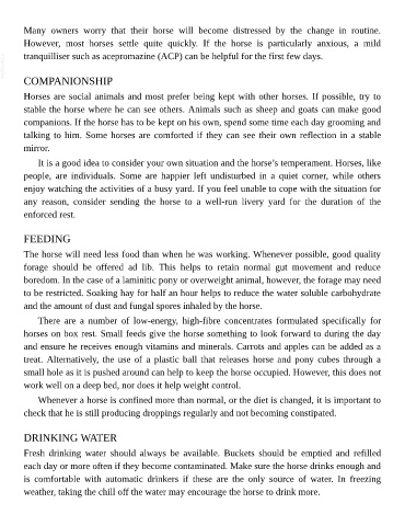 companions. If the horse has to be kept on his own, spend some time each day grooming and
