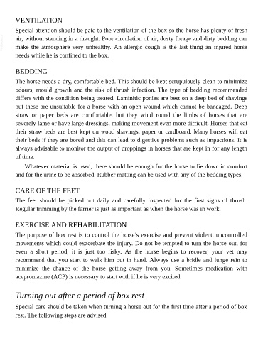 movements which could exacerbate the injury. Do not be tempted to turn the horse out, for