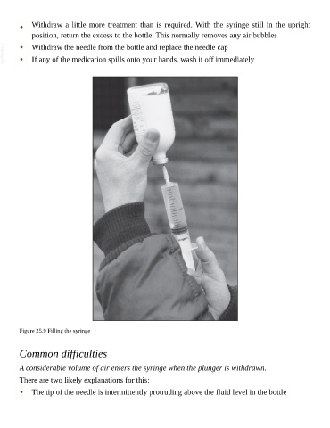 • Withdraw a little more treatment than is required. With the syringe still in the upright