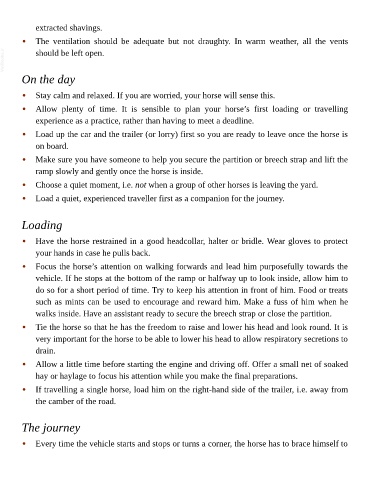 • Load up the car and the trailer (or lorry) first so you are ready to leave once the horse is