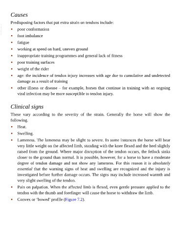 raised from the ground. Where major disruption of the tendon occurs, the fetlock sinks